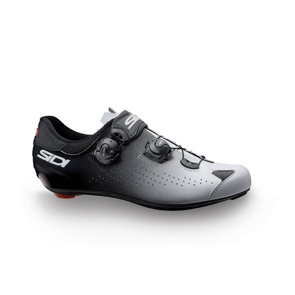 The Sidi Genius 10 Mega Road Shoe, as its name suggests, is the Mega version of Sidi's Genius 10 Road Shoe, designed to offer a comfortable fit to riders with wider than average feet. It is crafted around an EE or EEE width last, so that the finished shoe is 4mm wider across the ball of the foot. The Mega last furthermore gives the shoe a greater volume, higher instep and wider heel cup than the classic Genius 10.
