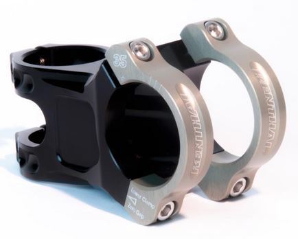 The Renthal Apex stem features our unique new clamping system. This allows much of the stem body material to be removed, whilst retaining the strength and stiffness demanded by modern, wide handlebars. The clamps are inserted over the small diameter section of the handlebar and slid into the centre, giving a 240deg wrap of the handlebar.
