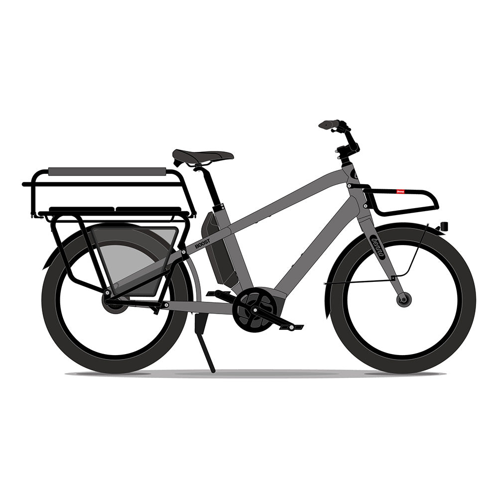 The Benno Boost Fully Loaded is the large family bike that enables you to ride with up to two kids on the back and all their stuff or other loads stored conveniently up front.The Boost Fully Loaded pack comes with the following accessories included to get you and your family straight out for your first adventure:Boost Sideloader SetHigh Rail PLUSRail Clamp PLUS Set2 x Rack Pad Half Size2 x Rail padsWheel Guard Boost MeshUtility Front Tray Black1 x Dual Kickstand