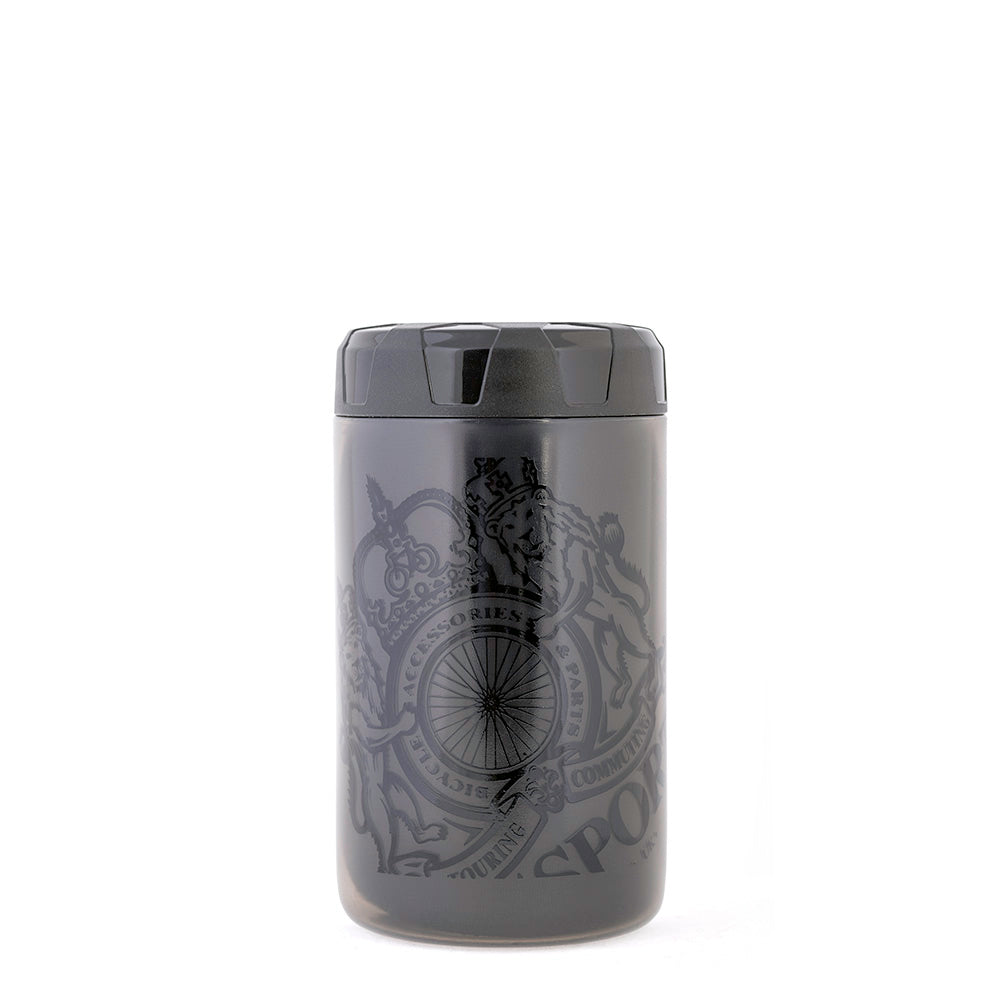 Smoke colour with stealth graphicsMaterial: Polypropylene (BPA-free)Large filling opening - easy to cleanNeoprene sleeve to stop tools rattling insideAvailable in two sizesFits most standard bottle cages