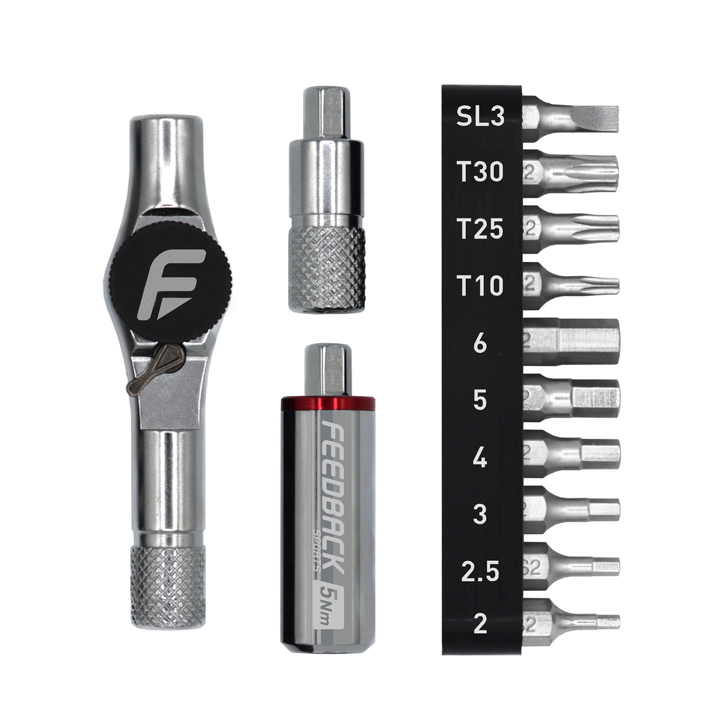 The Reflex Fixed Torque Ratchet Kit, Feedback Sports' first take everywhere, ride-ready kit, will tackle the most common repairs and adjustments you're likely to need on the road. Its padded case will easily fit into your pocket or travel bag.