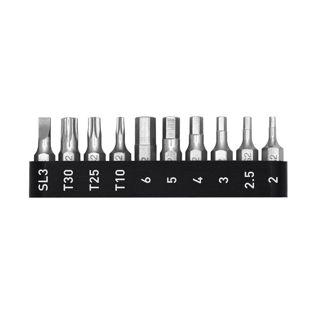 The Feedback Sports Reflex Bit Holder with Bits is a labelled holder that accommodates ten of the most commonly used bike repair bits.