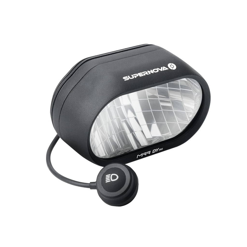 The SUPERNOVA M99 DY PRO is the world's first dynamo-operated LED headlight with high beam function and German road approval.