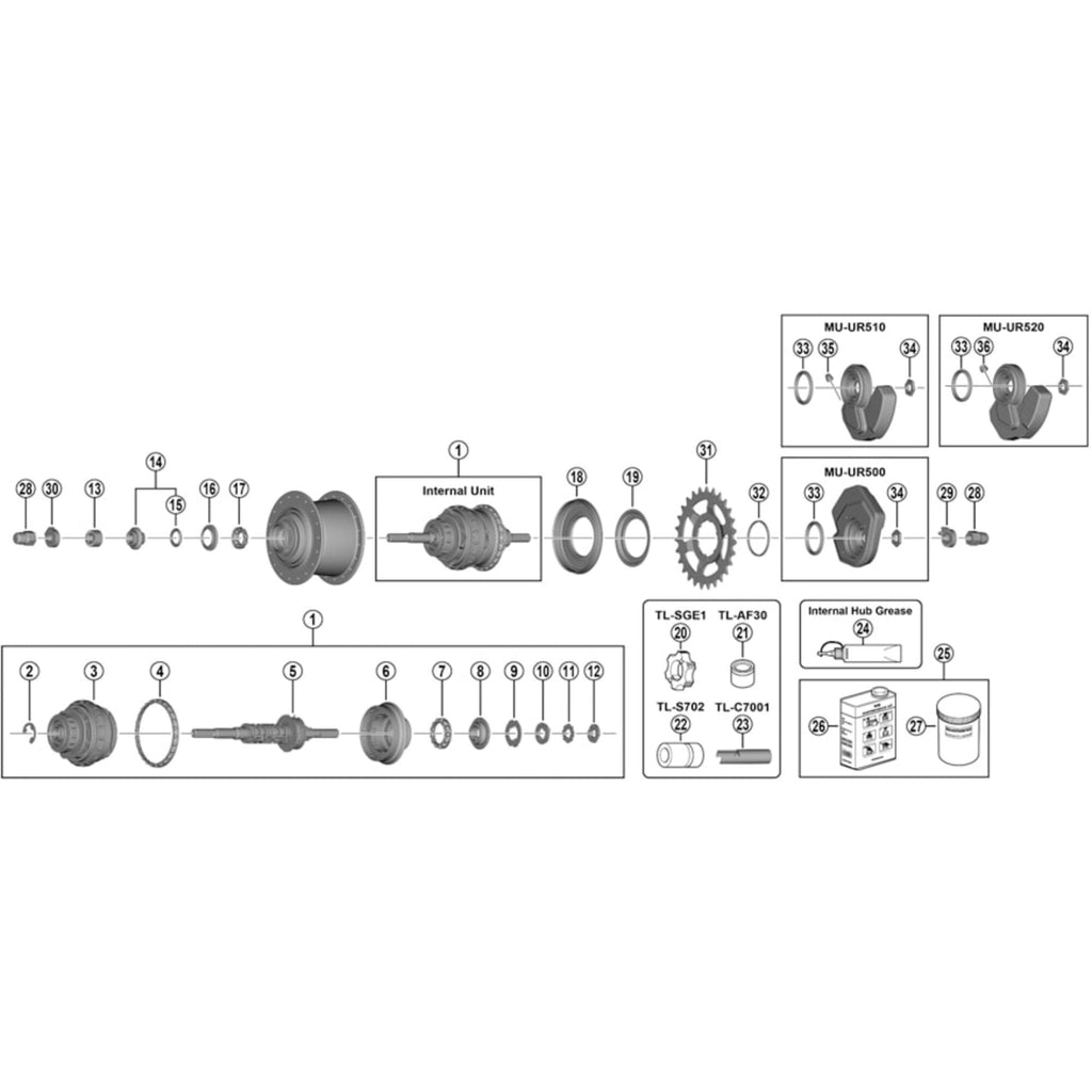 • SG-S7000-8 Alfine left hand cone with dust cap and seal ring is product number 14 in the attached image
