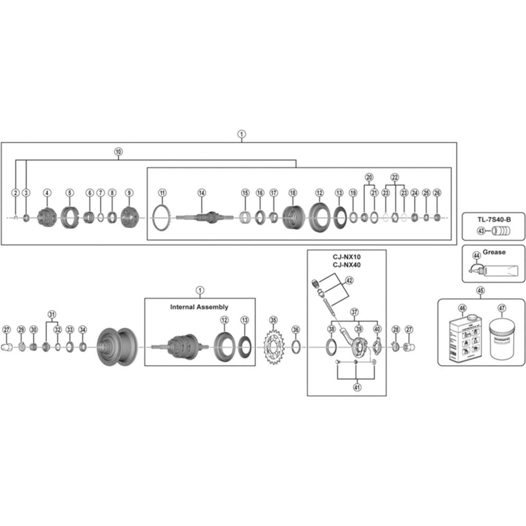 • SG-C3001-7D internal assembly, axle length 187 mm is product number 1 in the attached image