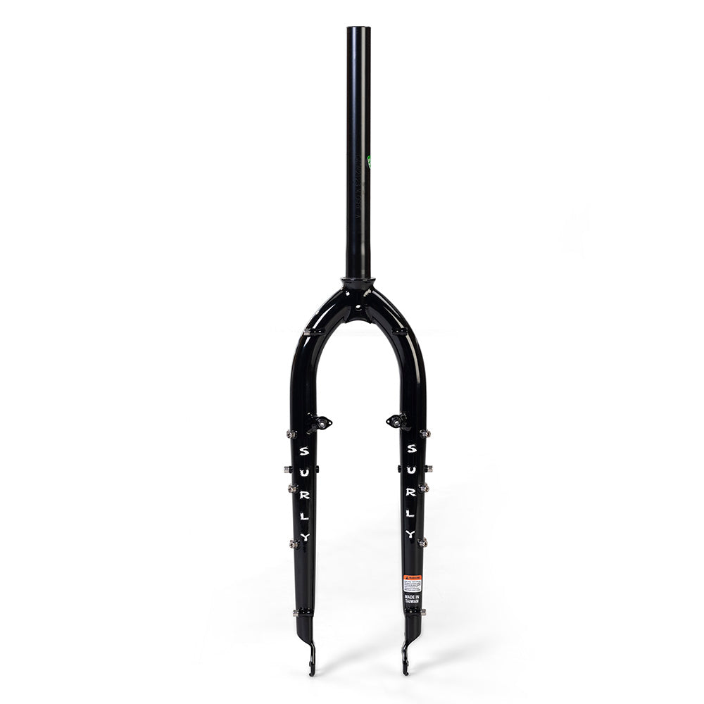 Ogre Fork features mid-blade eyelets and low-blade barrel bosses for mounting front racks. Canti pivots and disc brake mounts are provided