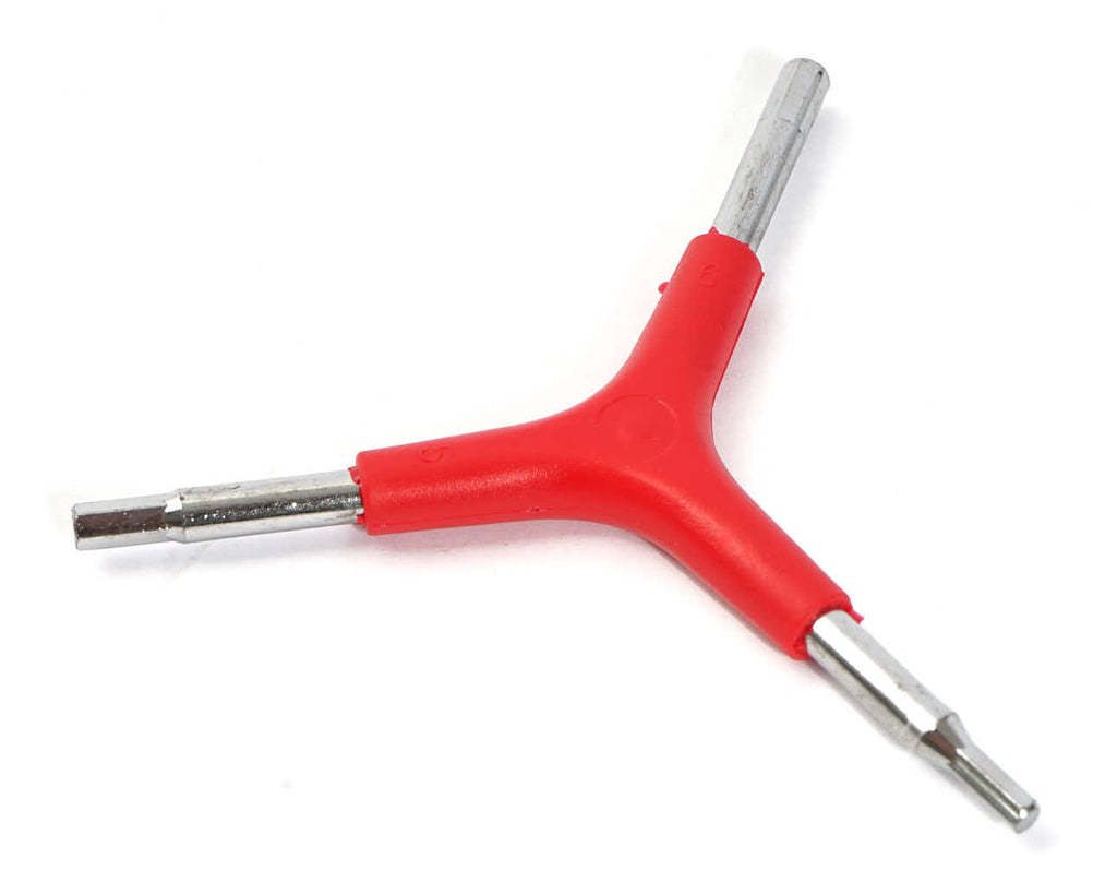 Useful three-arm spanner with 4.5 and 6mm hexagon socket and anti-slip coating.