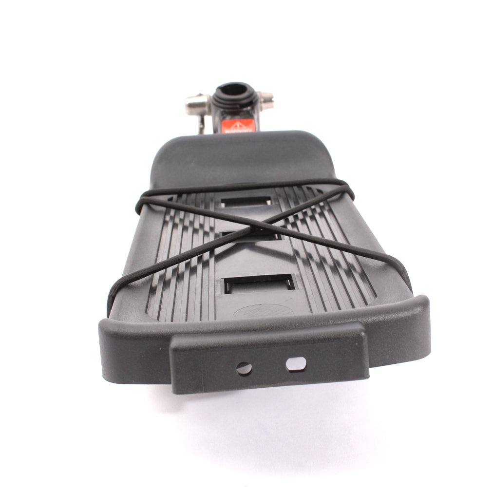 Der SP-Quick Aluminium Gepäckträger ist leicht, stabil und bietet eine Anti-Rutsch-Auflage sowie einen Spanngurt zur sicheren Befestigung von Gepäck. Er hat eine maximale Zuladung von 9 kg und wird an der Sattelstütze montiert.