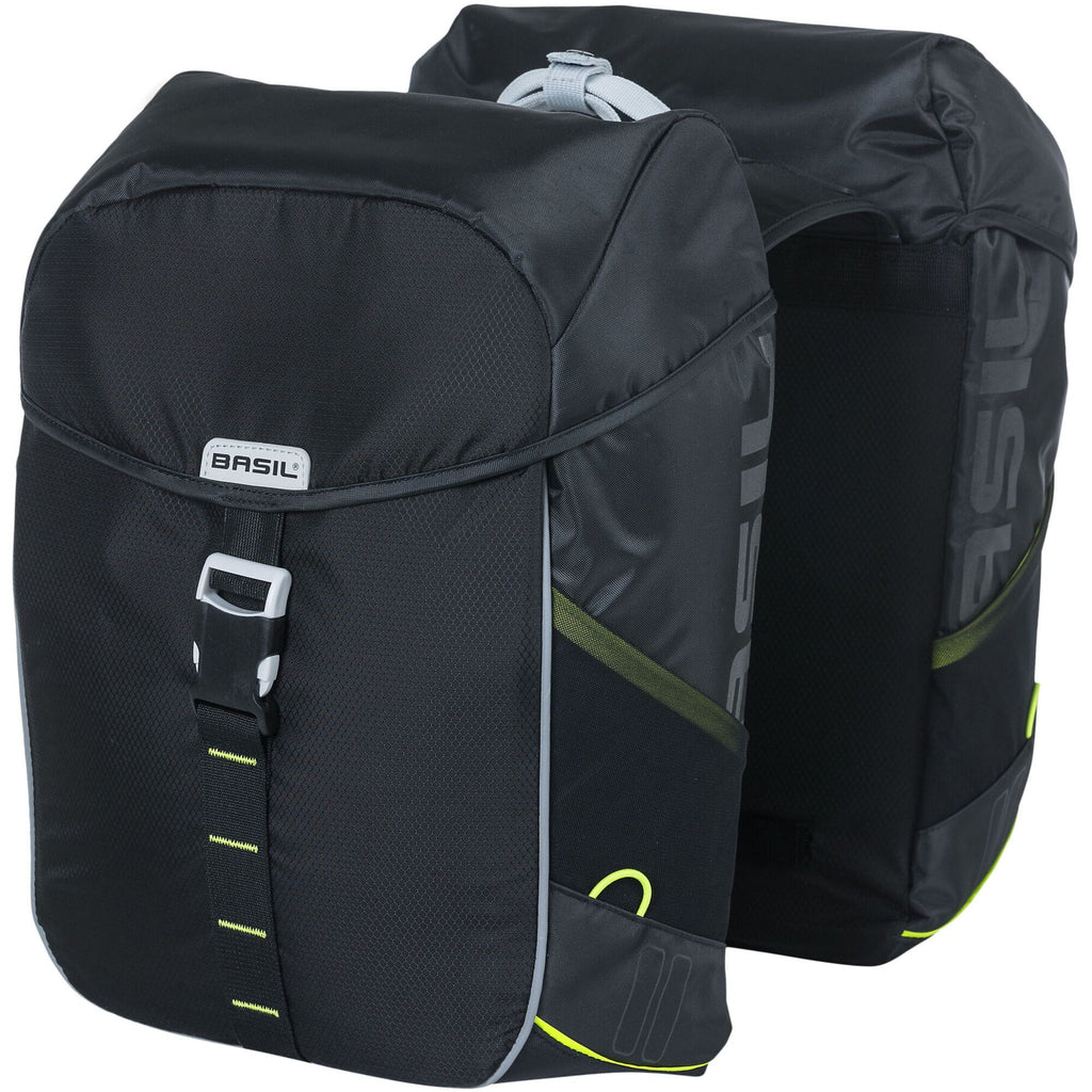 • The Basil Miles Double Bag is a double-sized bike bag with a total capacity of 34 litres.
