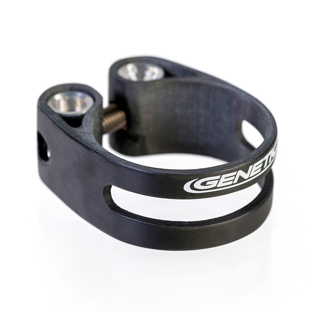 Superlight Carbon Seatclamp.A finishing touch to a road going super-bike.UD Carbon body with cut-out. Alloy pivoting inserts.Ti bolt.31.8 or 34.9mmWeight: 10g(Max Torque. 6.6Nm) 31.8mm or 34.9mm