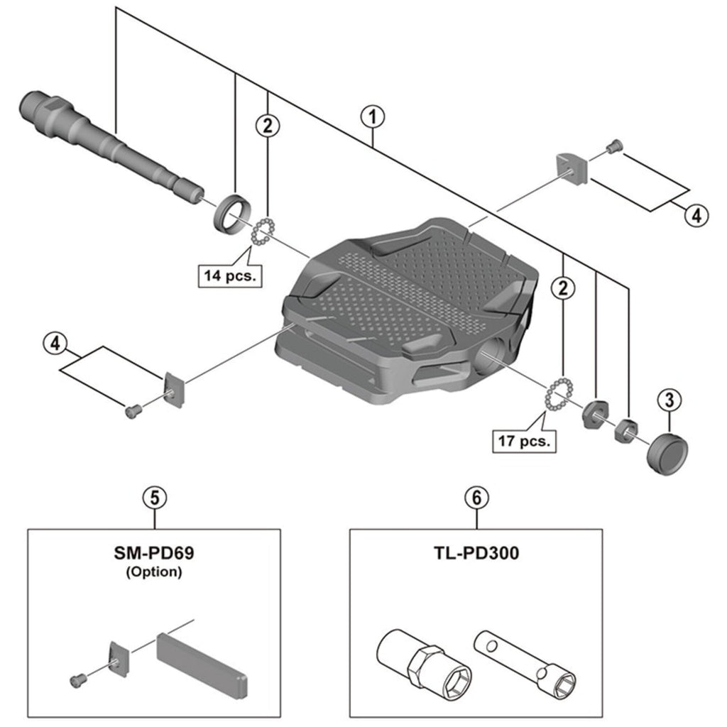 - PD-EF202 pedal axle assembly, right hand is product number 1 in the attached image